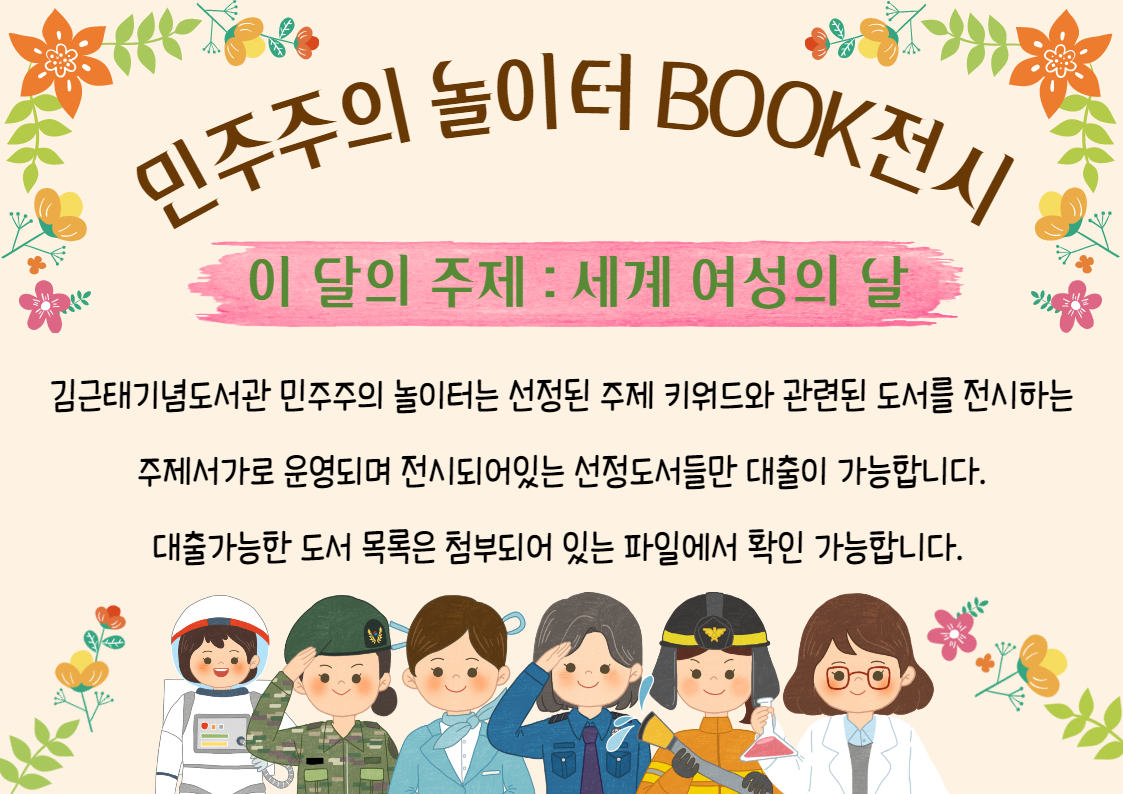 2022년 3~4월 민주주의 놀이터 (어린이실)의 도서 컬렉션 주제는 "세계 여성의 날"입니다.