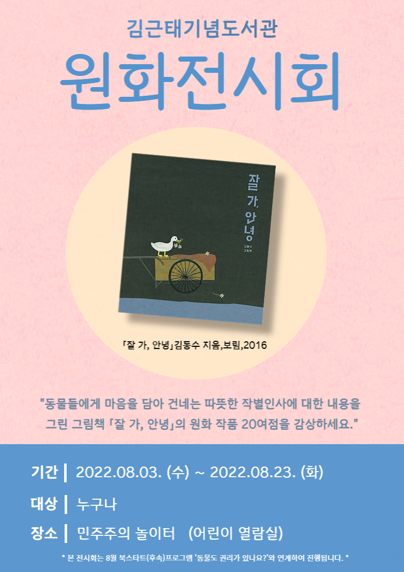 * 본 전시회는 8월 북스타트(후속)프로그램 '동물도 권리가 있나요?'와 연계하여 진행됩니다.*