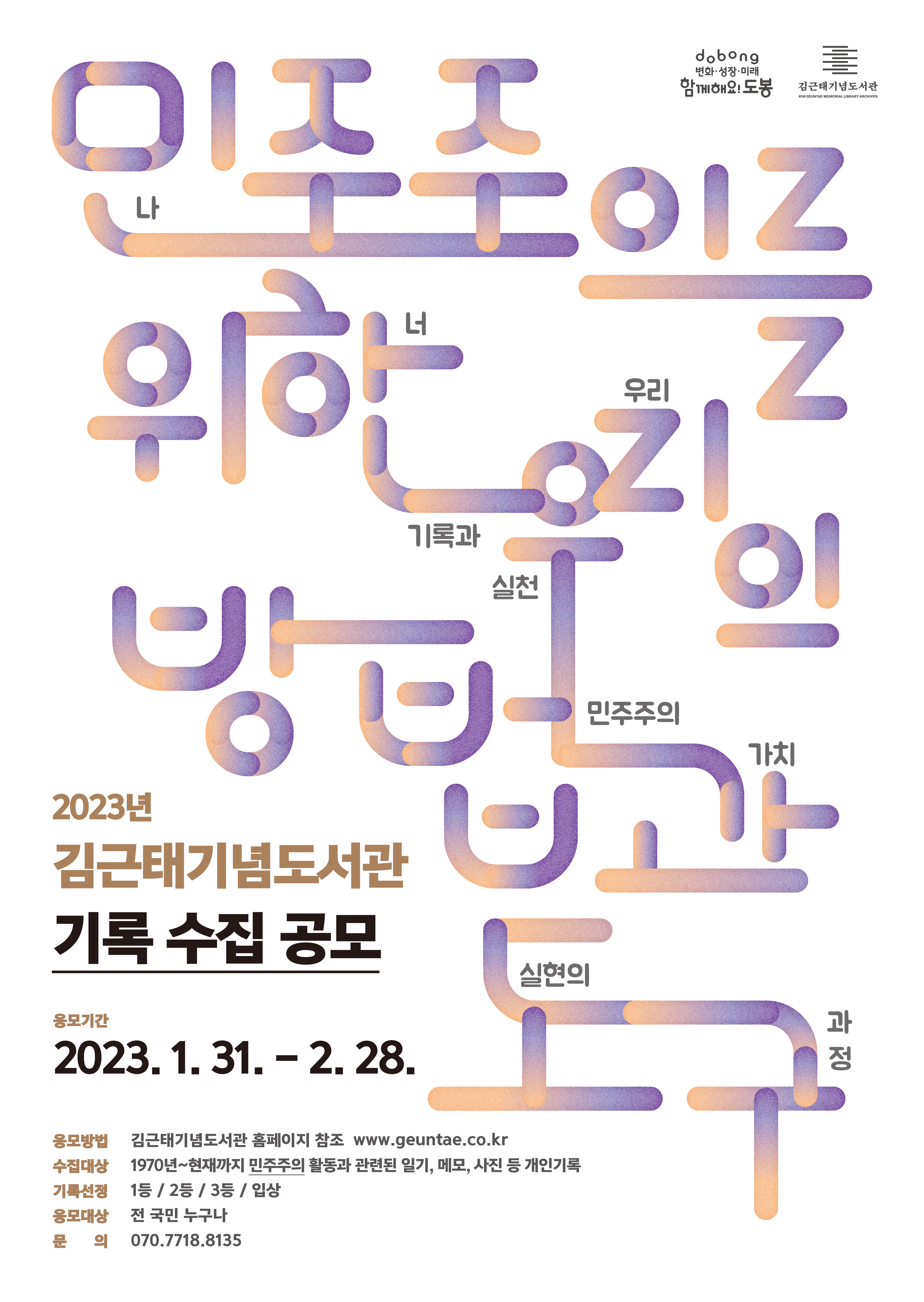 - 공모를 통해 수집된 기록물은 김근태기념도서관 홈페이지 내 게시 및 전시 활용 예정