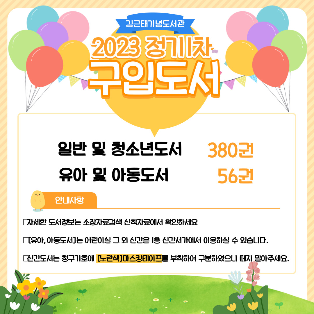 신착도서 중 [유아동도서]는 1층 민주주의 놀이터(어린이실), 이외의 모든 도서는 1층 신착서가에 비치됩니다.