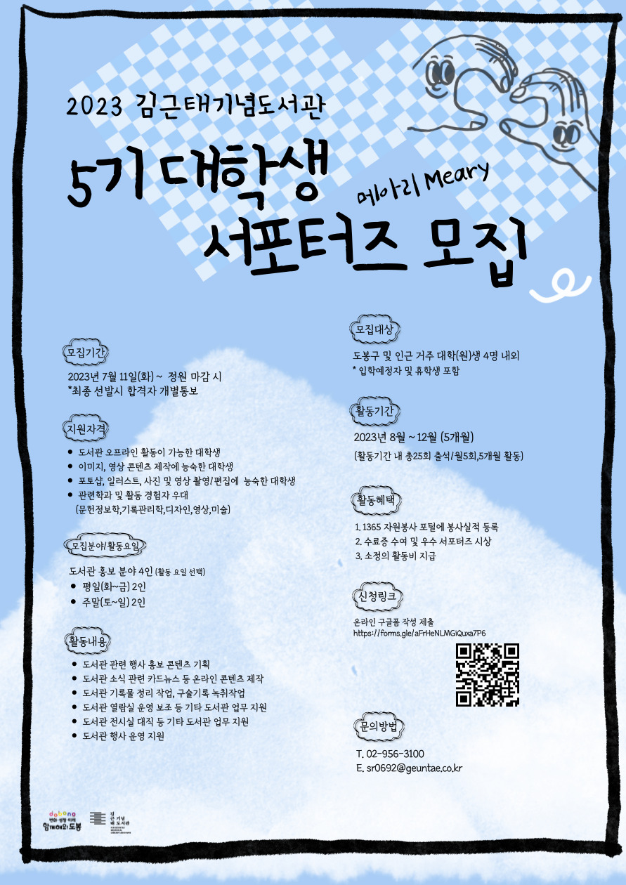 김근태기념도서관 2023년 대학생 서포터즈(MEARY) 5기 모집 안내