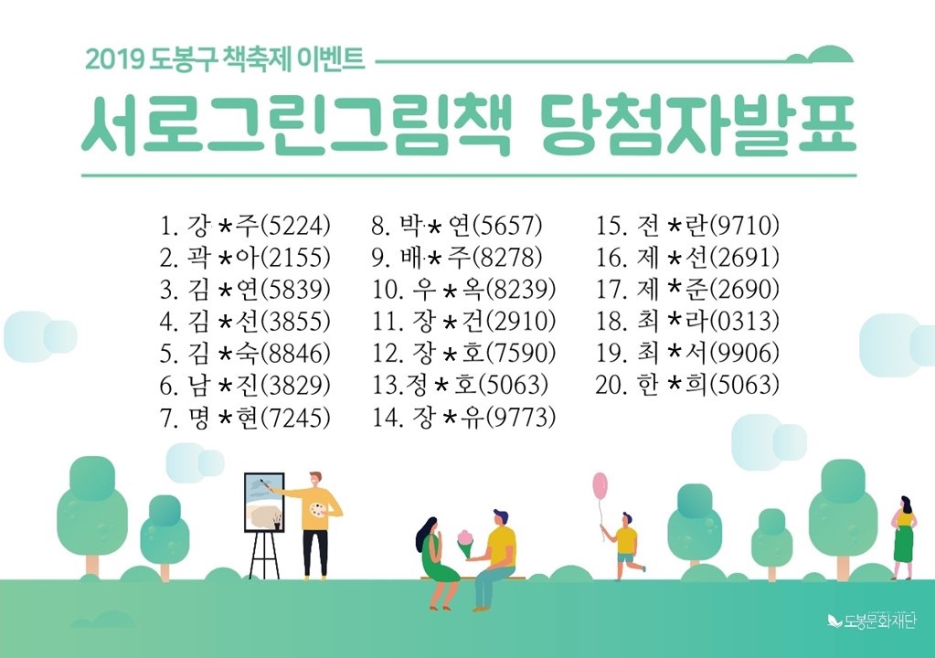 * 상품인 그림책은 도봉구 책축제 당일(9/21,토) 13:00~16:00 운영본부에서 당첨문자 확인 후 수령 가능합니다.