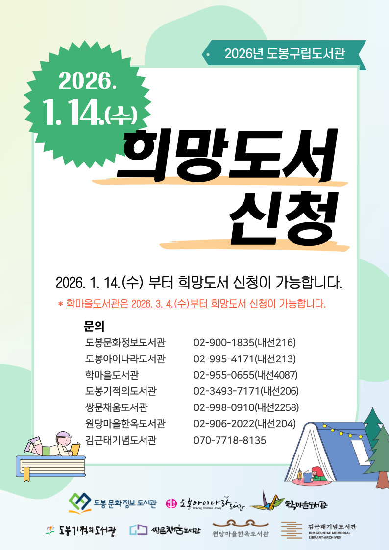 도봉구립도서관의 2026년도 희망도서 신청을 안내드립니다.
