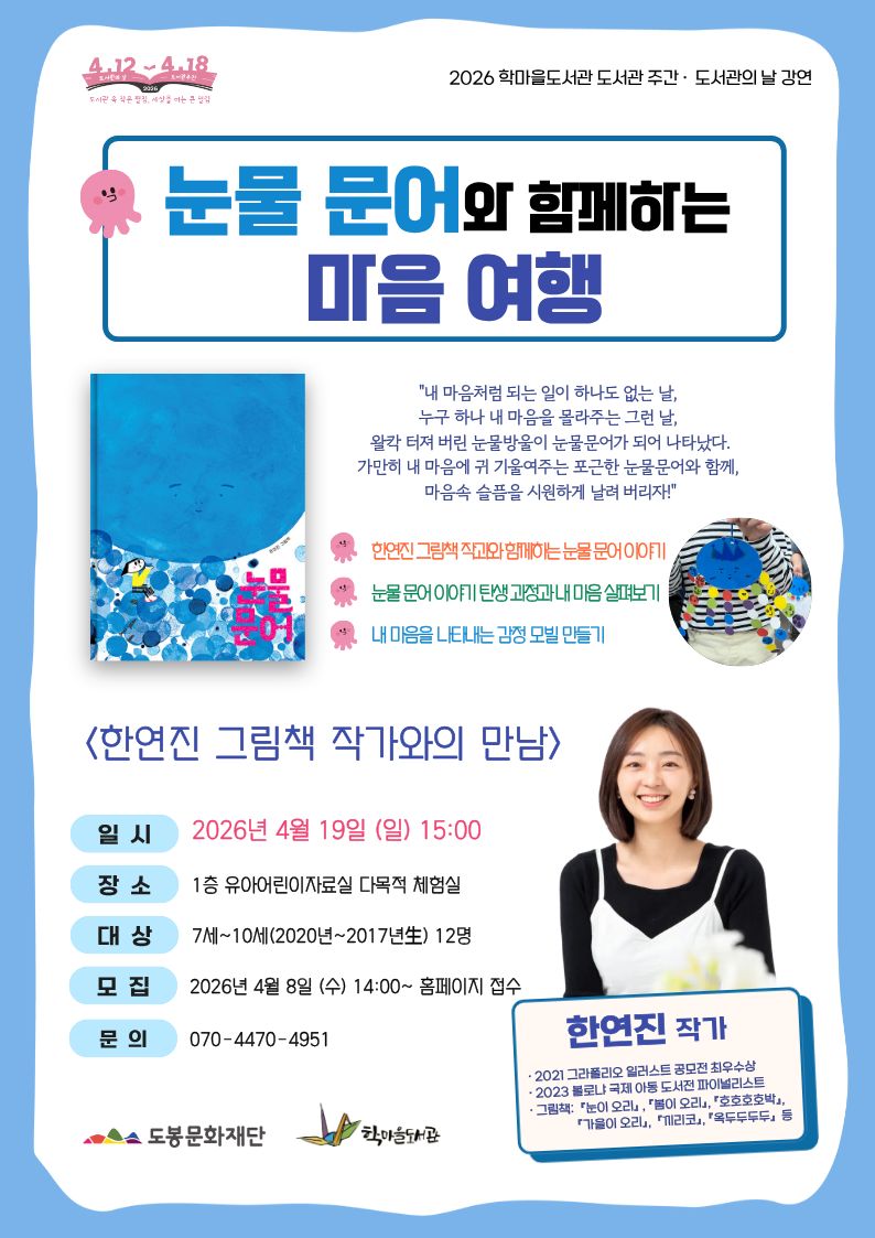 한연진 그림책 작가와의 만남 <눈물문어와 함께하는 마음 여행>