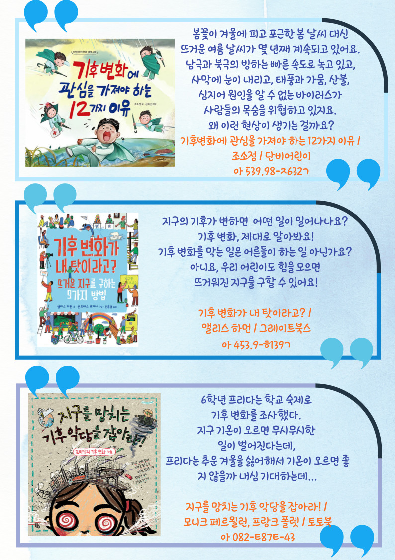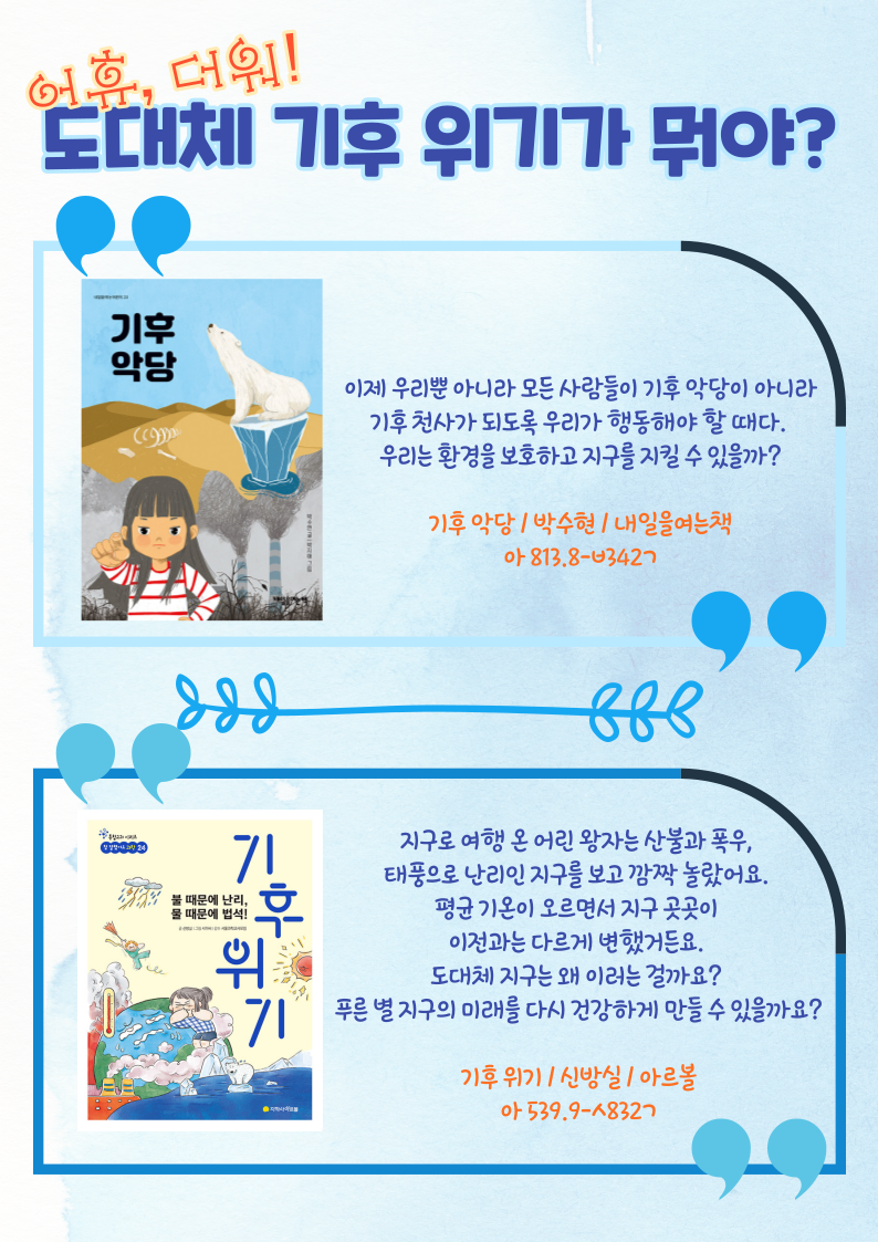 2층 로비에서 기후 위기에 관련한 책을 소개드립니다.
