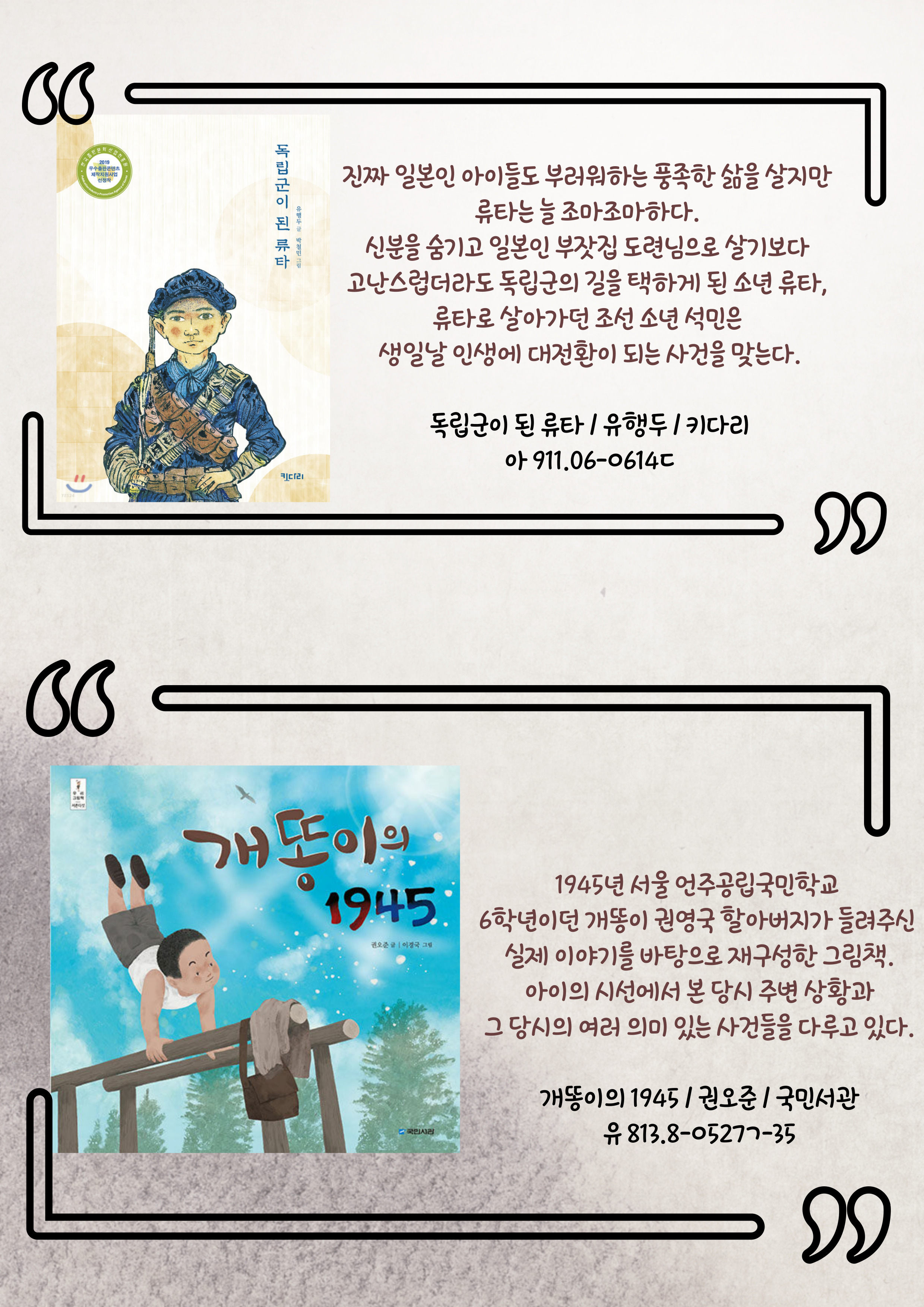 2층 로비에서 광복에 관련한 책을 소개드립니다.