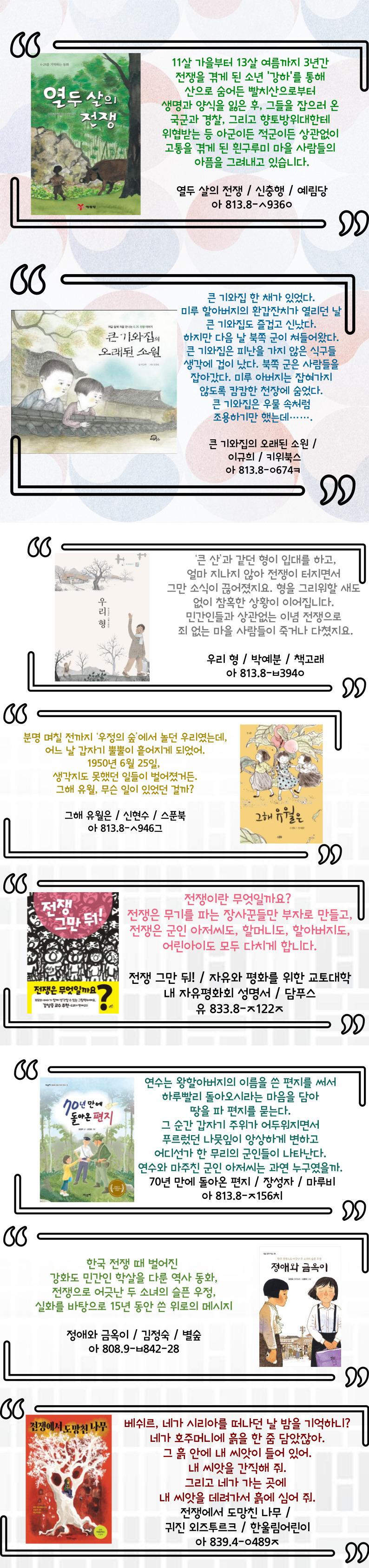 2층 로비에서 전쟁, 6.25에 대한 도서들을 소개드리고 있습니다.