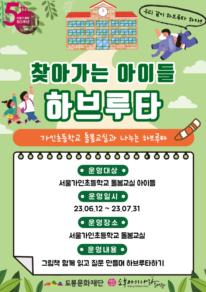 도봉아이나라도서관은 인근 초등학교인 서울가인초등학교 돌봄교실과 협력하여