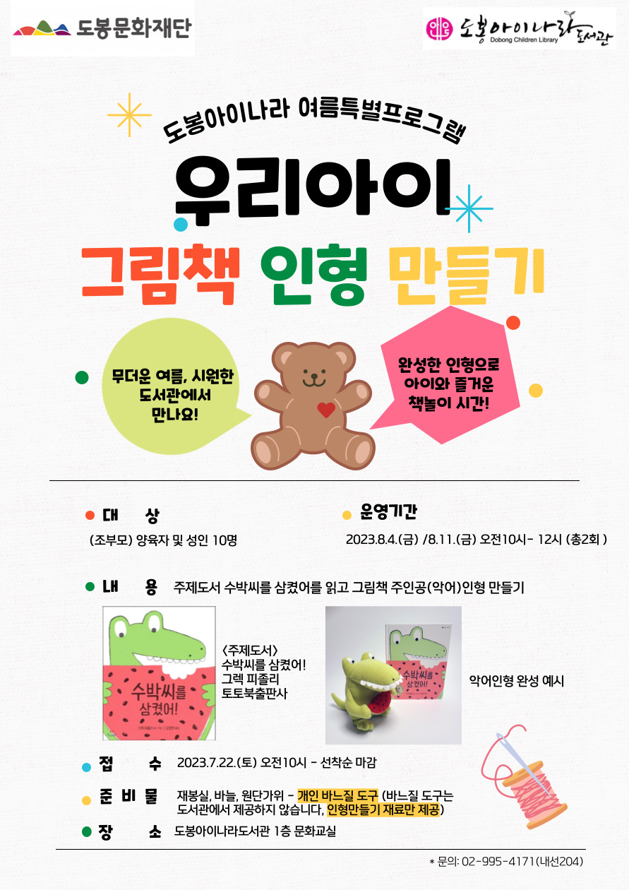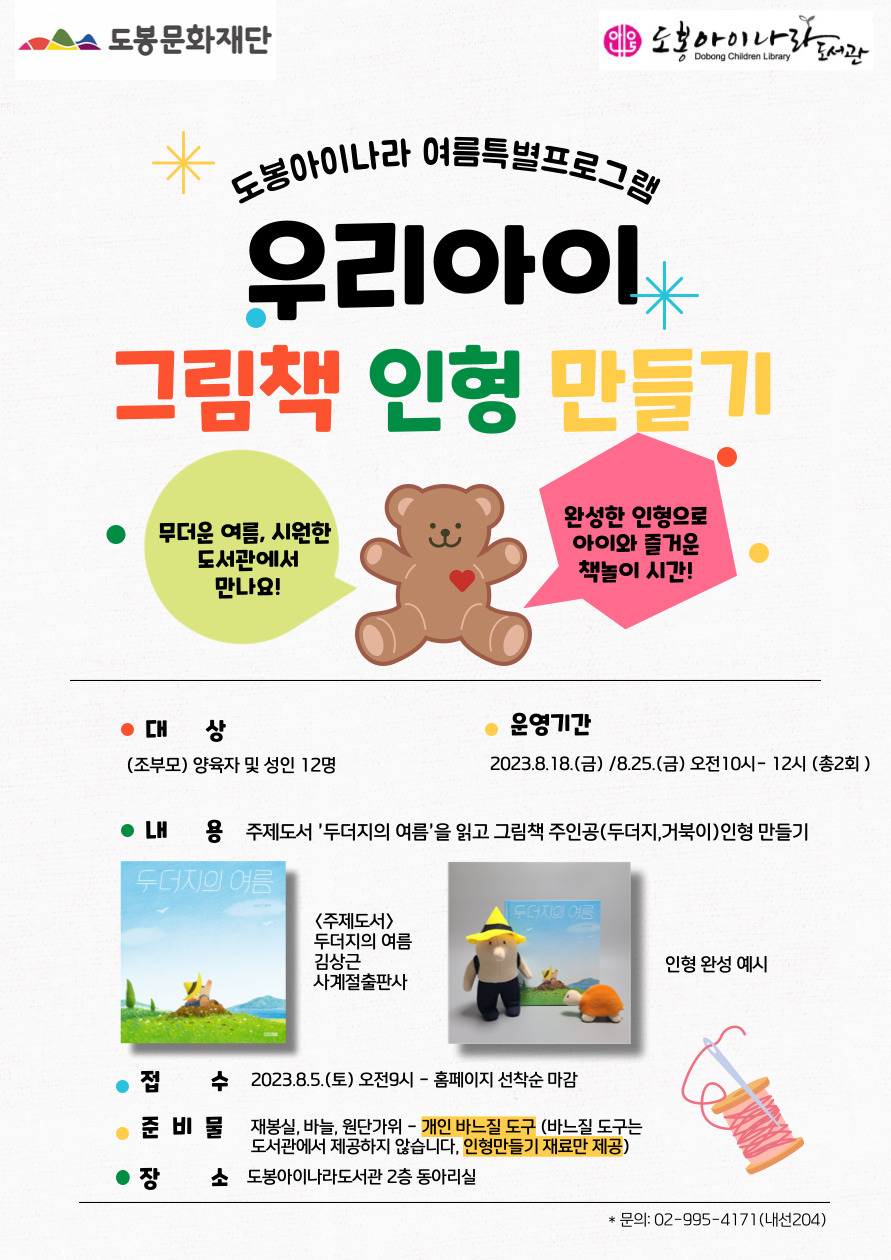 2. 인형만들기 재료만 제공합니다. 개인 바느질 도구(바늘,실,재단가위)는 각자 준비해 주세요.