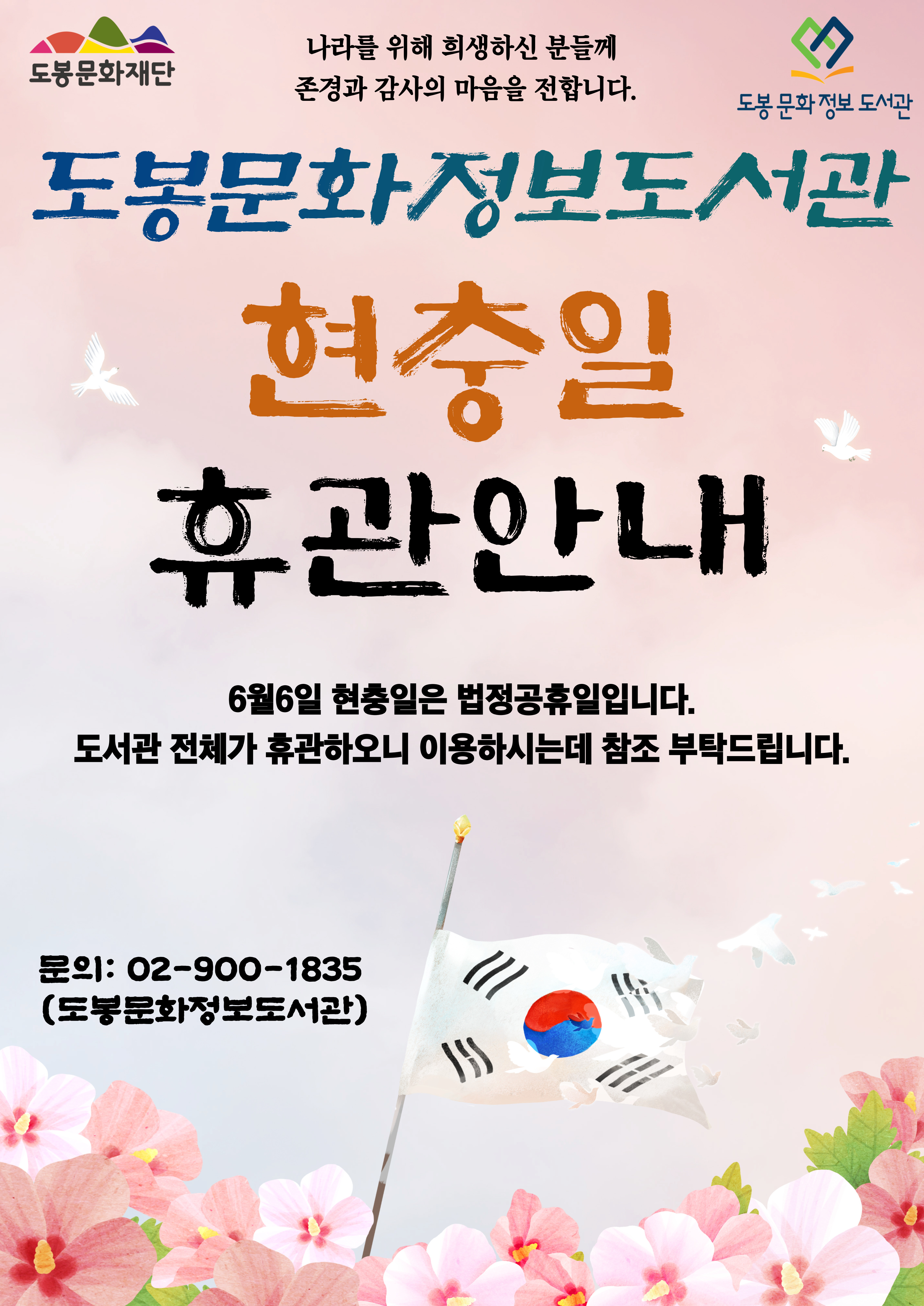 6월 6일 현충일은 도서관 전체가 휴관합니다.