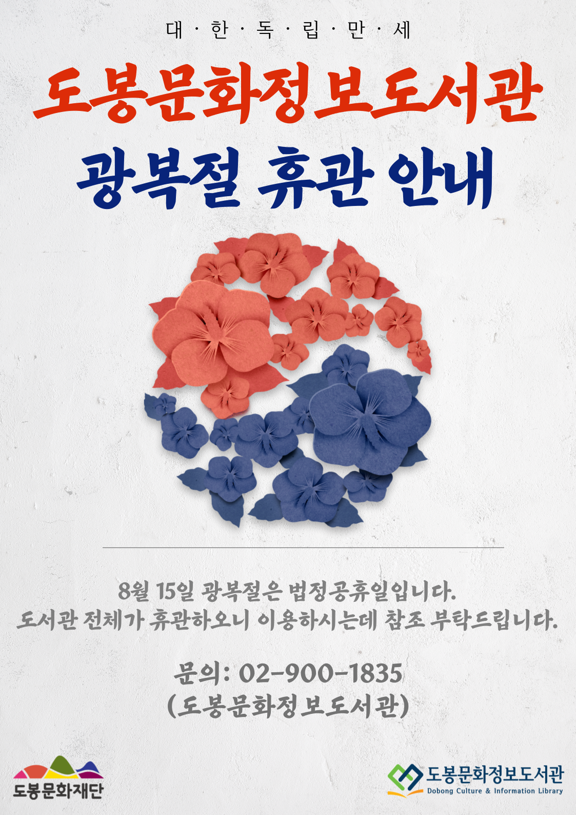 8월 15일 광복절은 도서관 전체가 휴관합니다.
