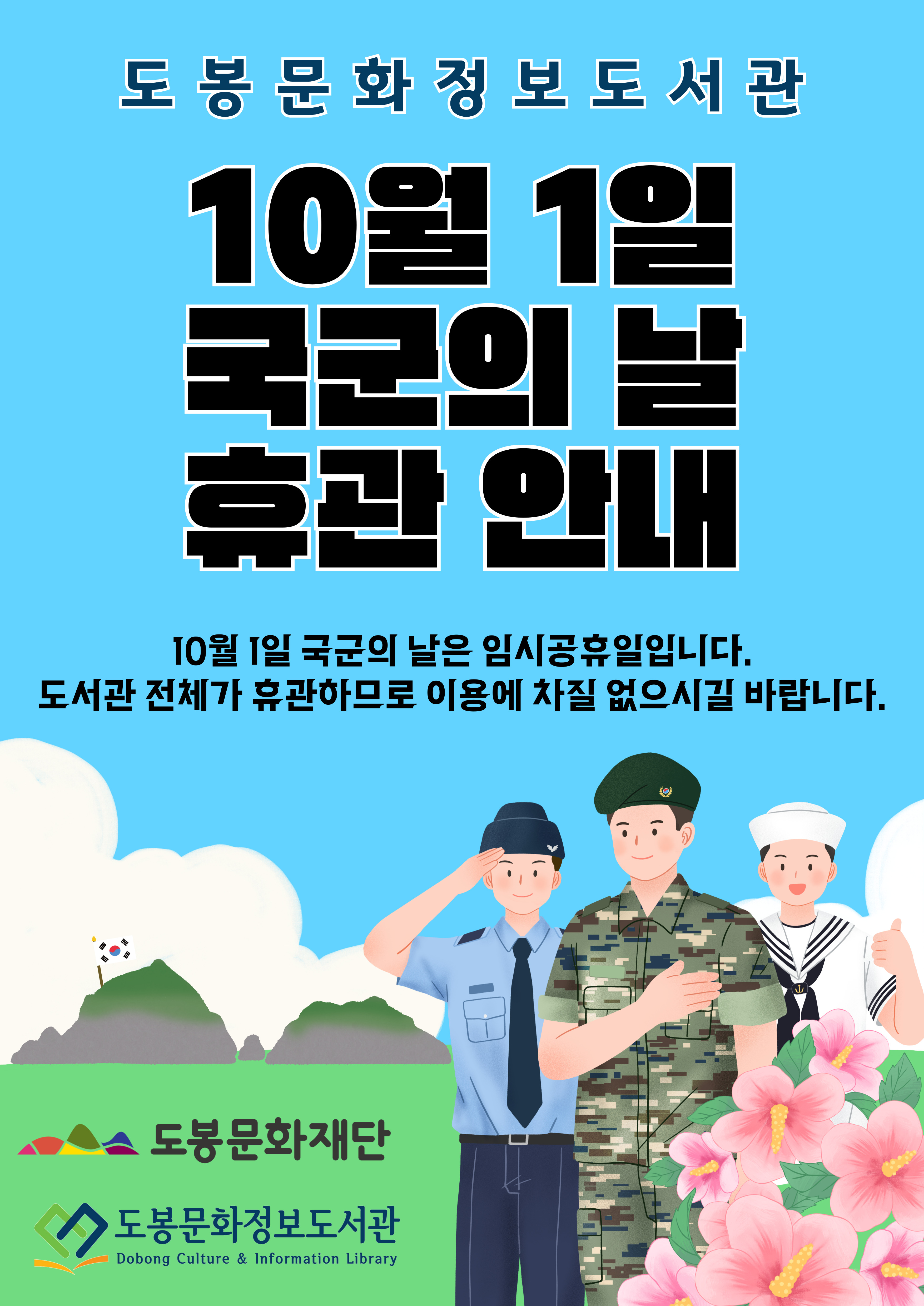 10/1 국군의 날은 임시공휴일입니다. 열람실을 포함한 도서관 전체가 휴관하오니 이용에 차질 없으시길 바랍니다.