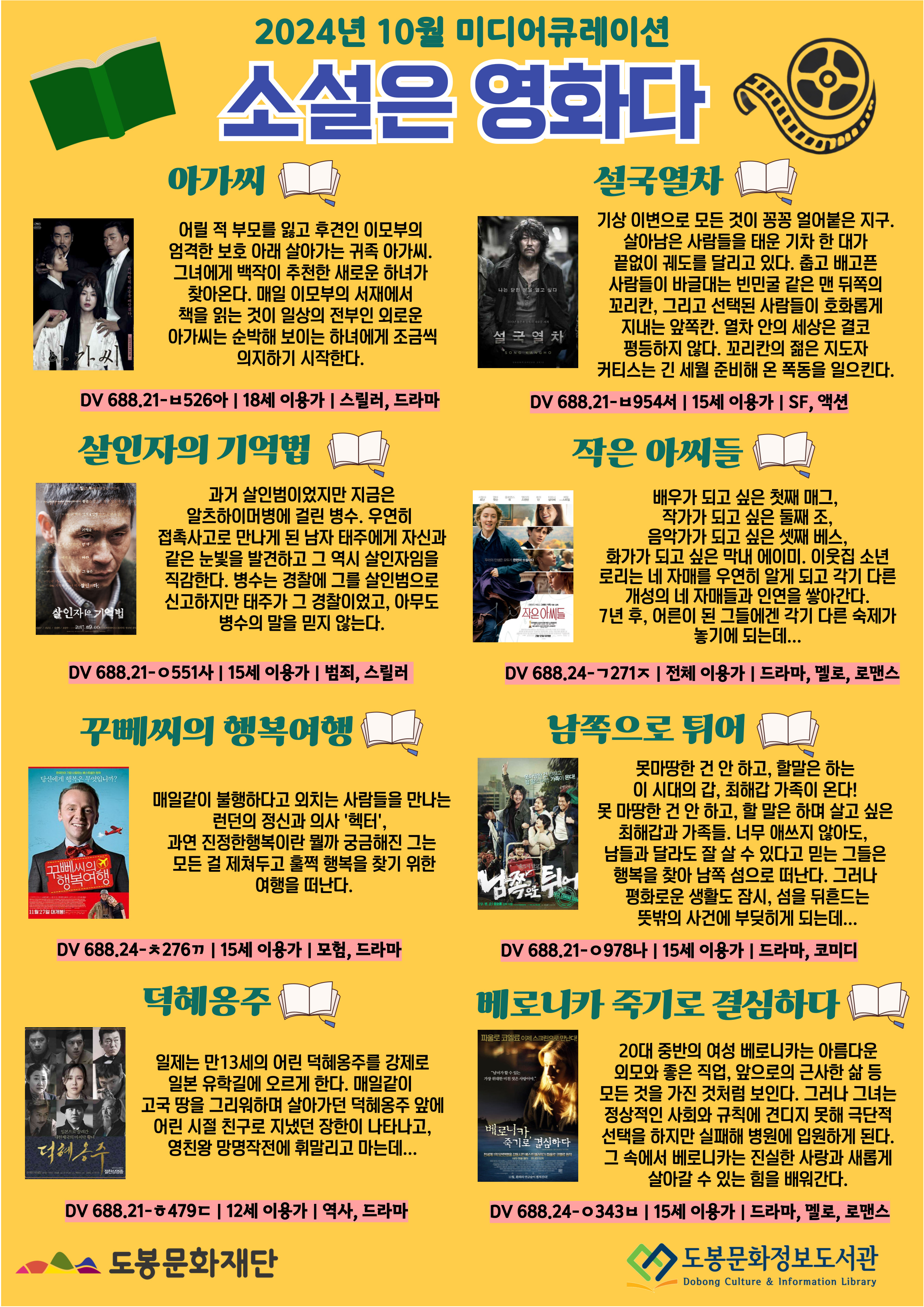 10월 멀티미디어실 미디어큐레이션을 소개드립니다. 많은 이용 부탁드립니다.