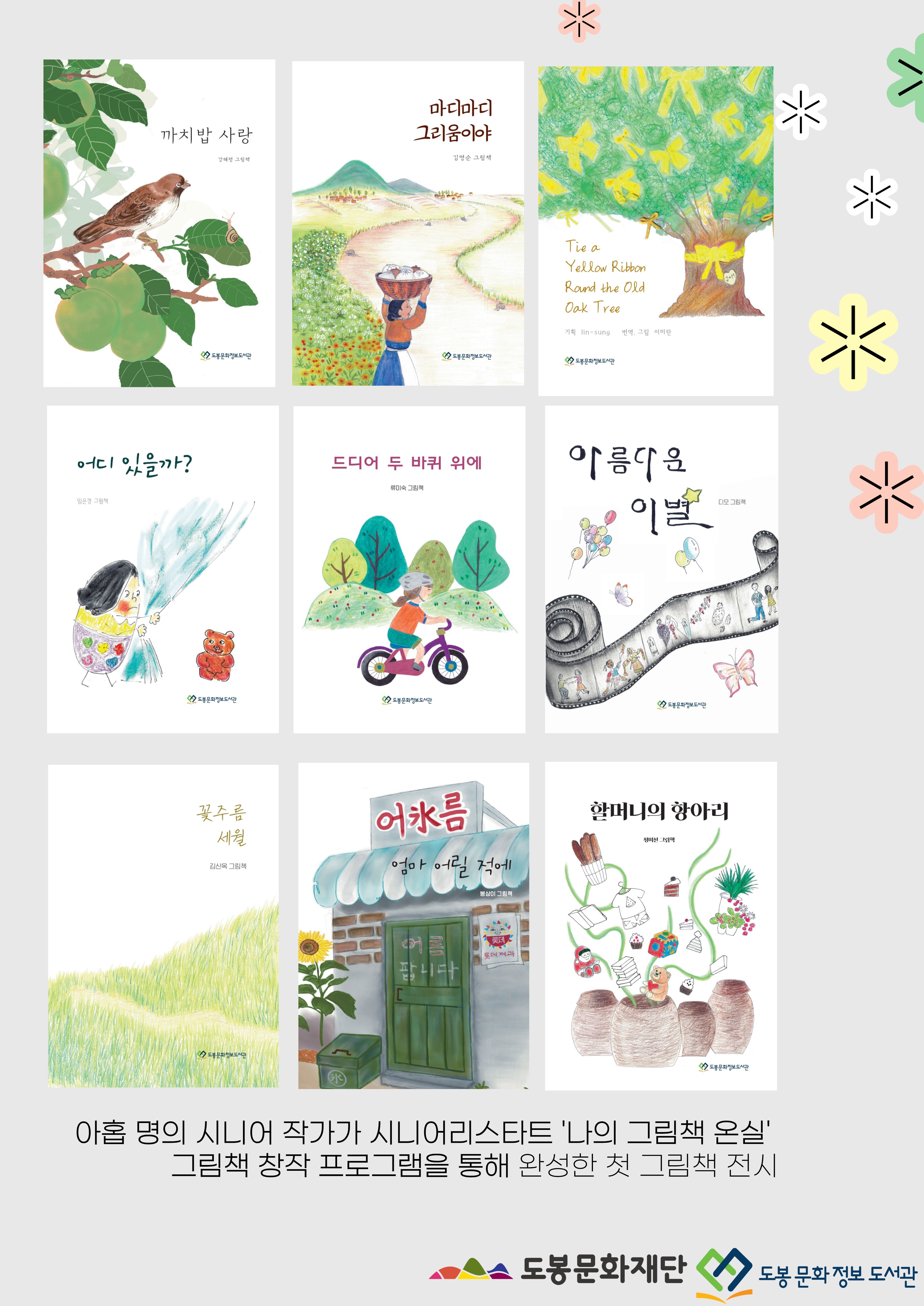 ■ 전시 내용: 『나의 그림책 온실』 프로그램에 참여한 시니어 작가 9인의 창작 그림책