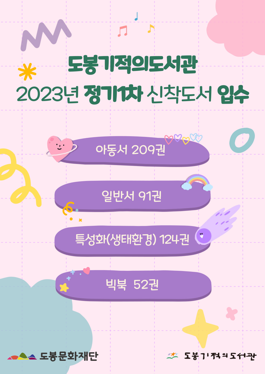 도봉기적의도서관 정기1차 신착도서 476권이 입수 되었습니다!