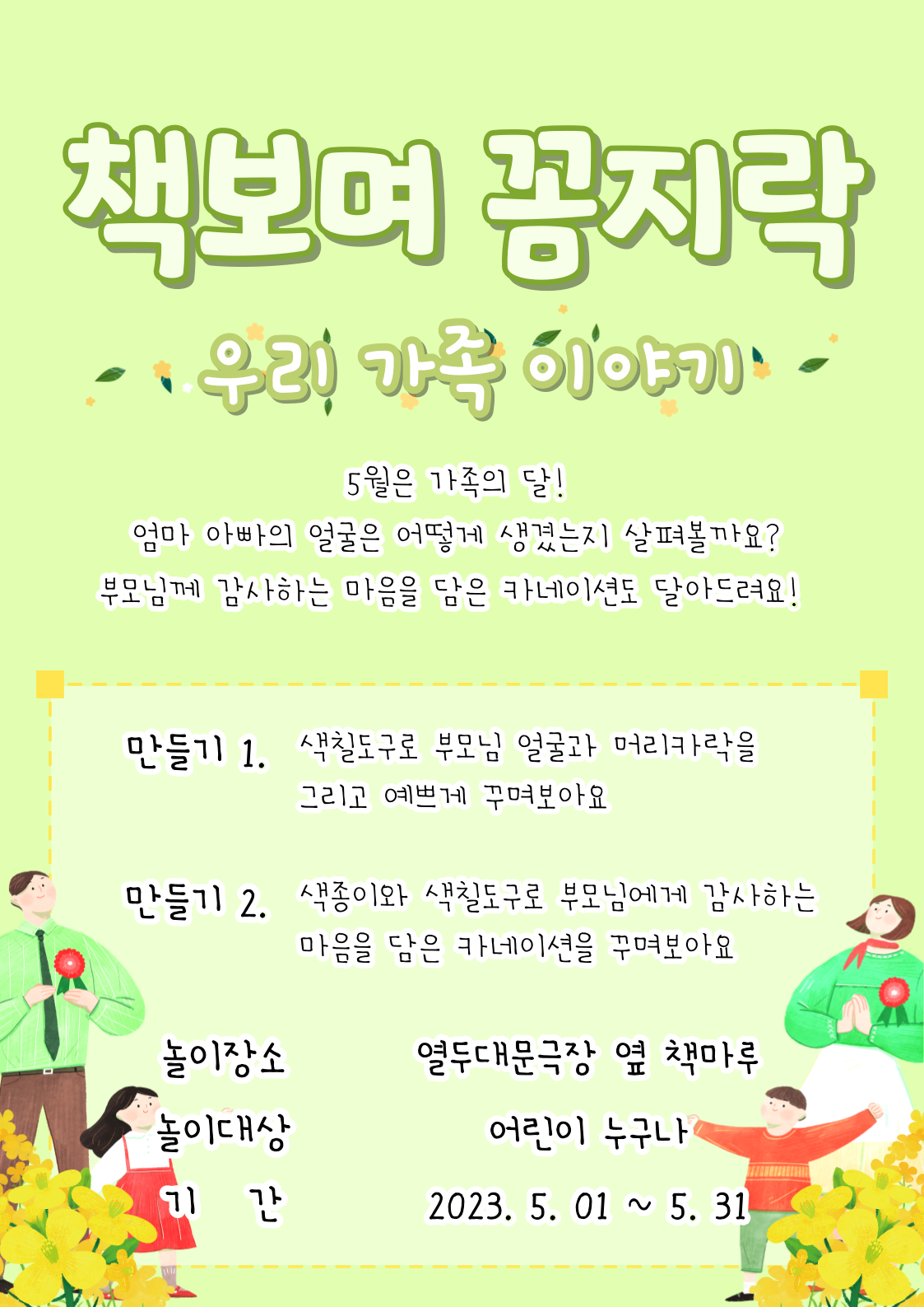 이번 달 주제는 5월 가정의 달을 맞이하여 '우리 가족 이야기' 입니다.