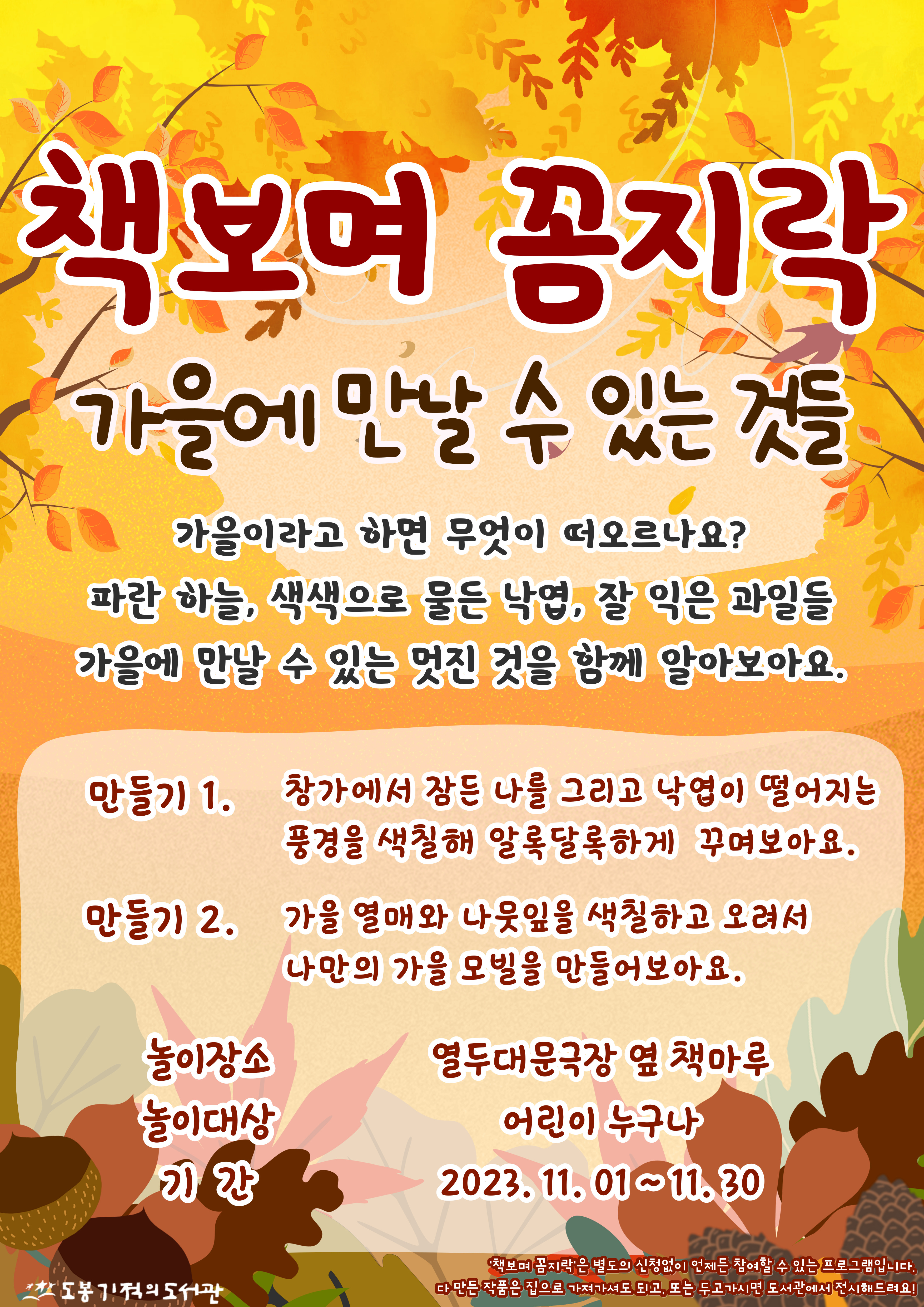 * <책보며 꼼지락>은 별도의 신청 없이 언제든 참여할 수 있는 어린이 상설 프로그램입니다.