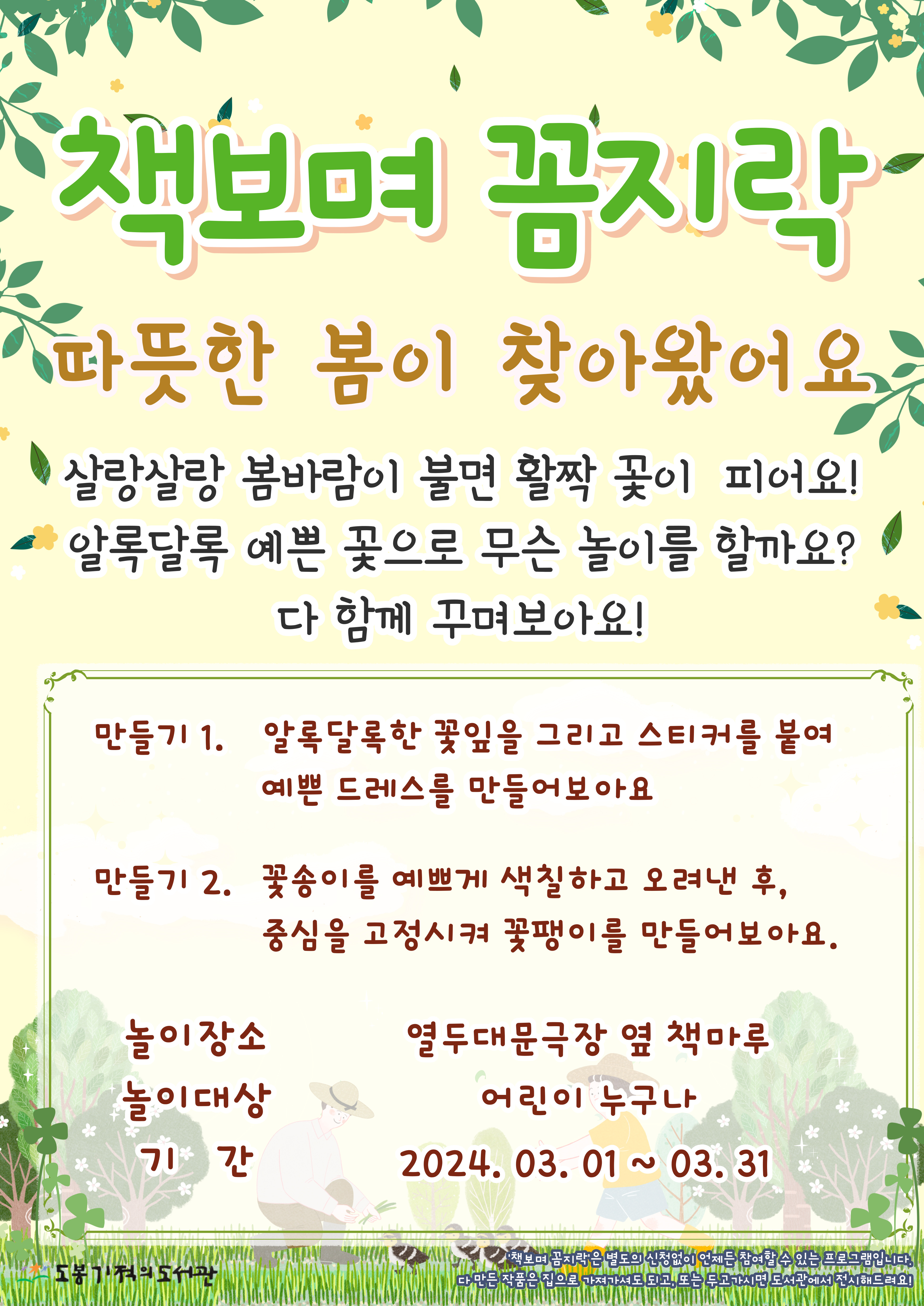 * <책보며 꼼지락>은 별도의 신청 없이 언제든 참여할 수 있는 어린이 상설 프로그램입니다.