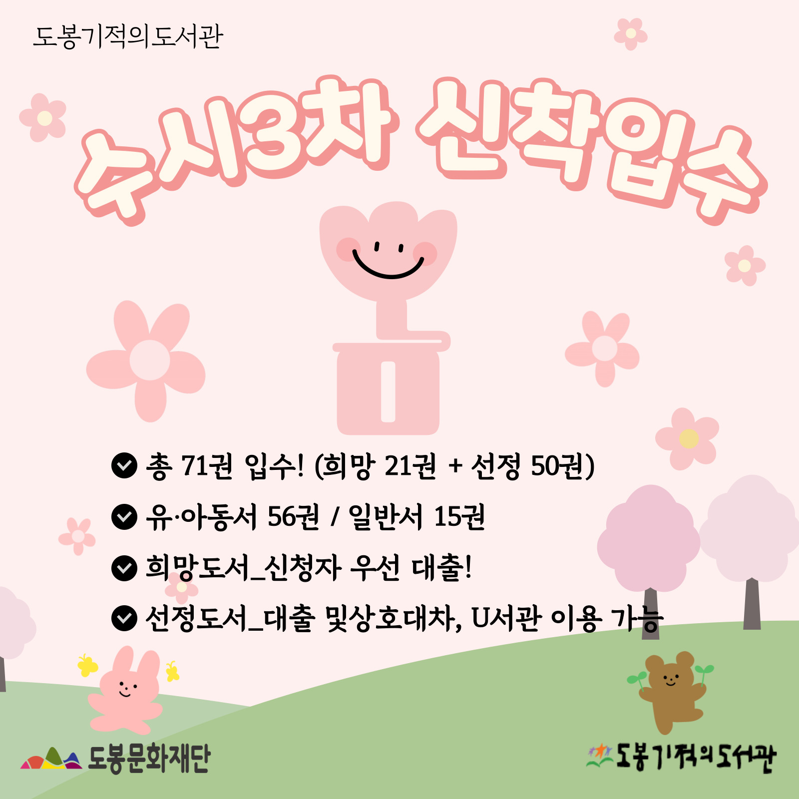 도봉기적의도서관 수시3차 신착도서 71권이 도착하였습니다.