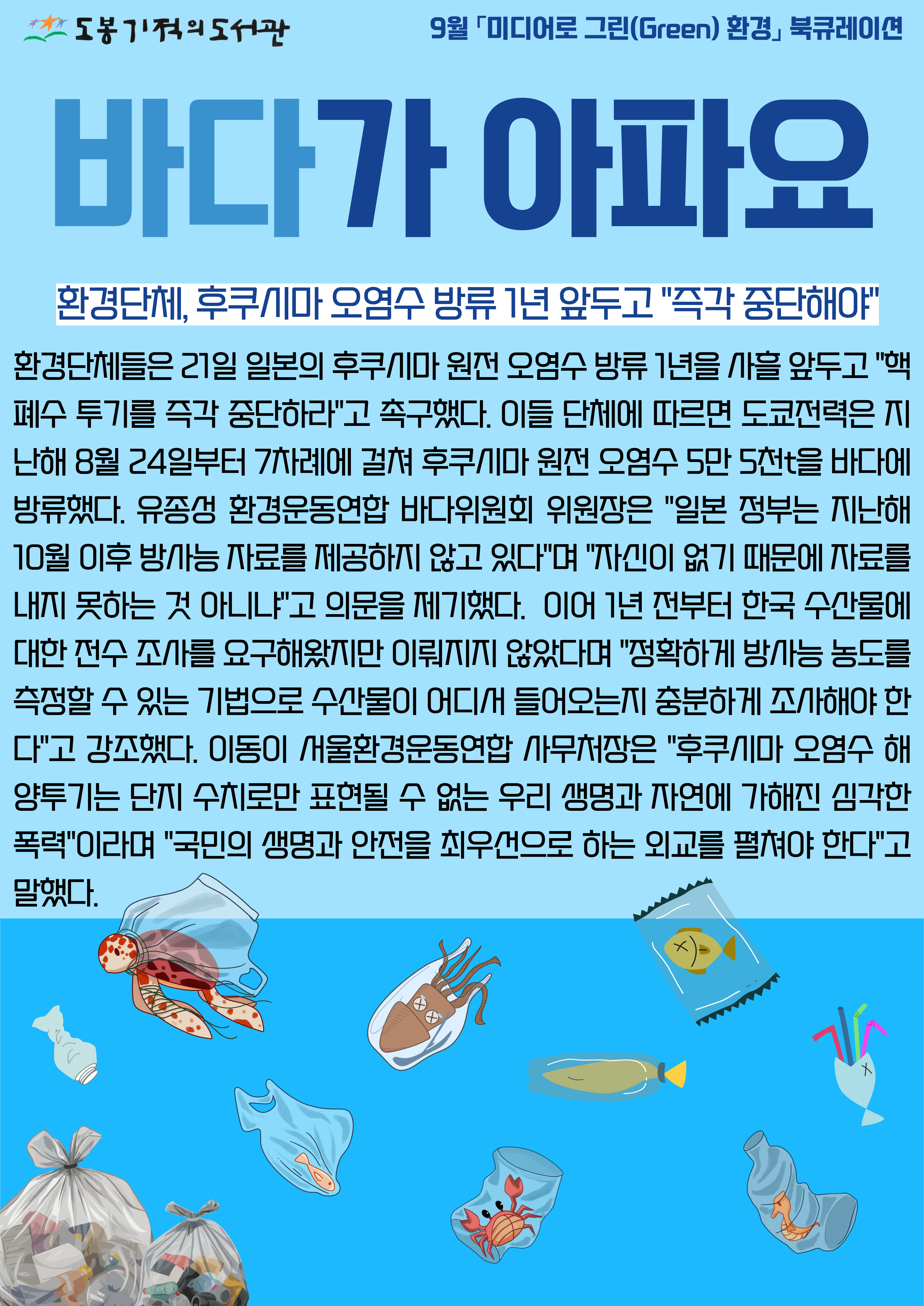 이 책을 통해 우리 모두가 겪고 있는 바다오염 문제를 알아보고