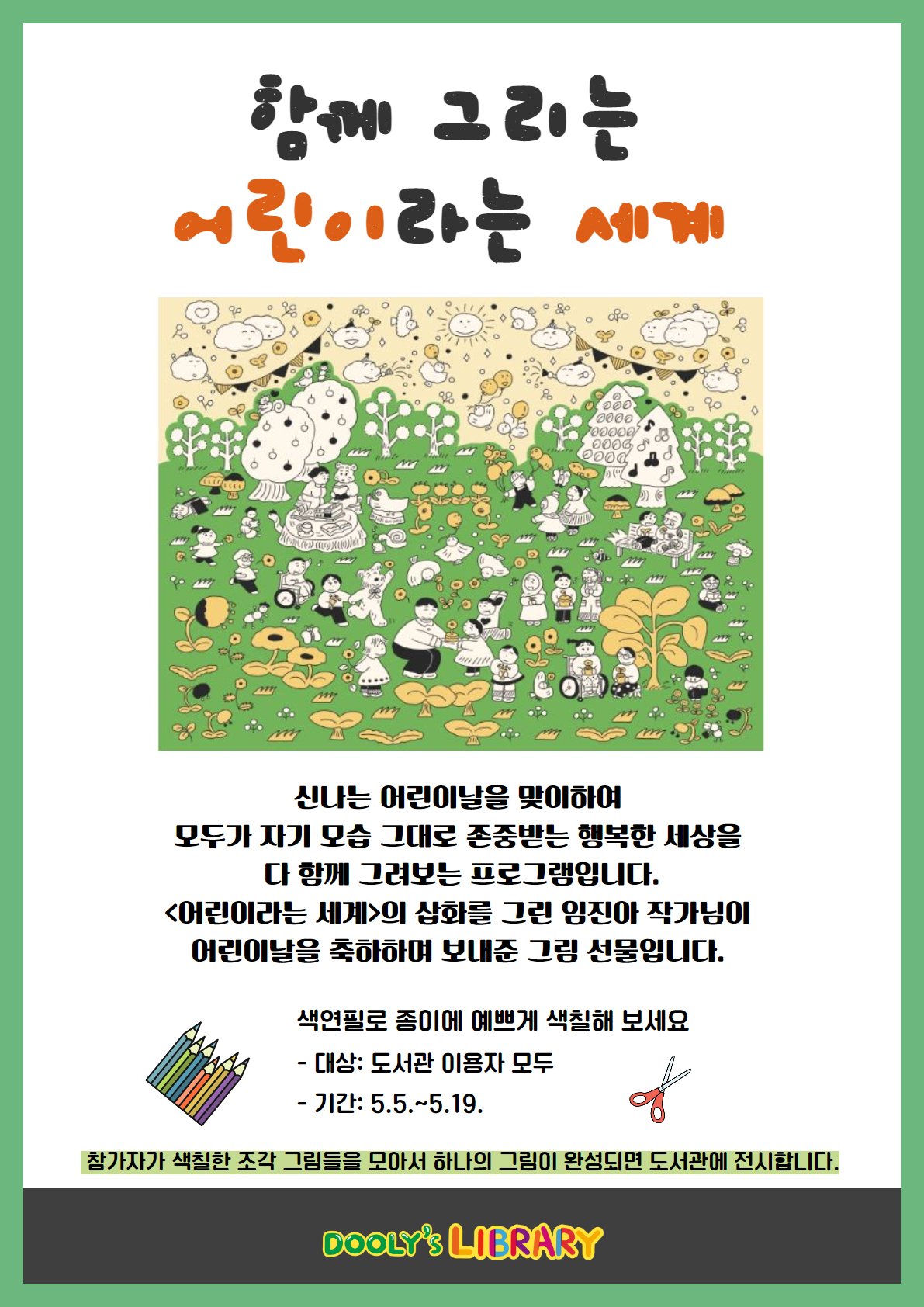 - 어린이날, 어버이날이 있는 즐거운 5월을 맞이하여 누구나 참여할 수 있는 협동화 색칠하기 프로그램입니다.