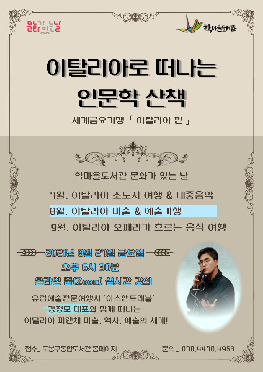 * 8월【문화가 있는 날】은 온라인 줌(Zoom) 라이브 강의 로 진행됩니다. *