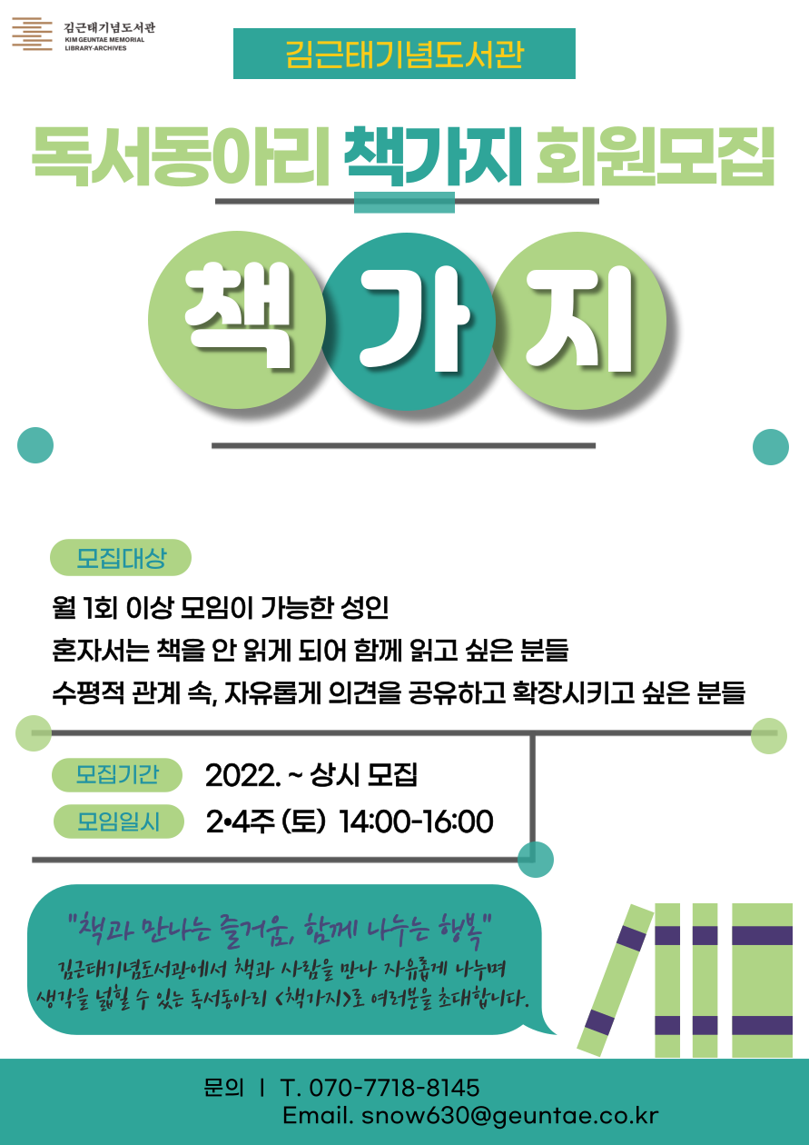 김근태기념도서관에서 독서 동아리<책가지>의 회원을 모집합니다.