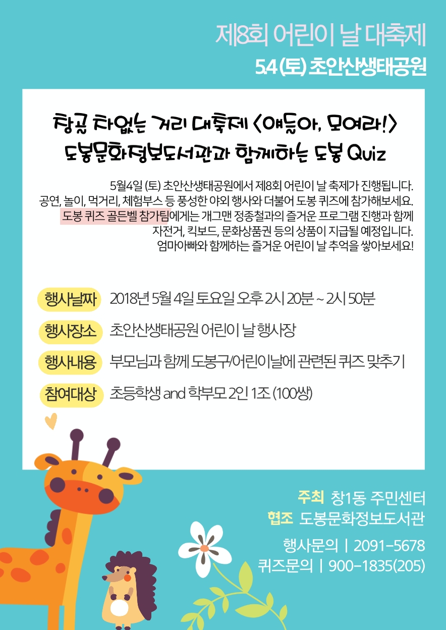 어린이 날 야외 행사에 놀러올 뿐만 아니라 도봉 퀴즈 골든벨에 참석하여