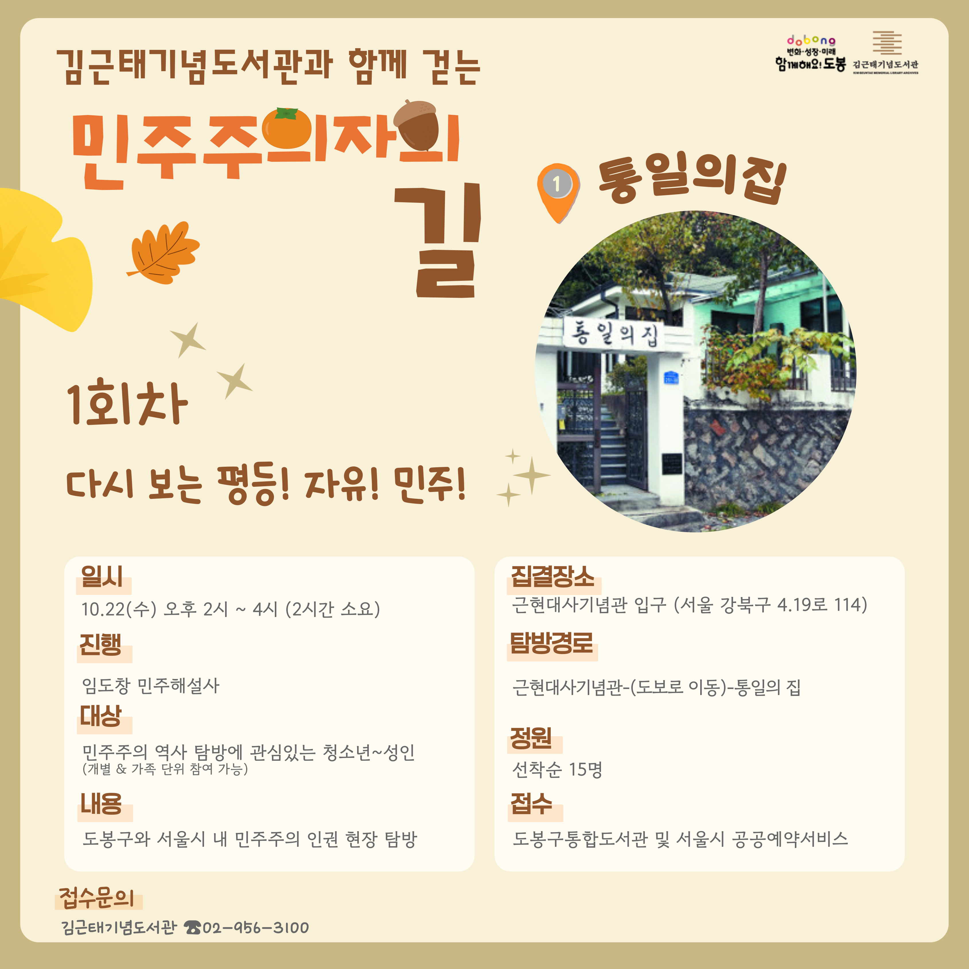 민주해설사와 함께 도봉구를 포함한 민주주의와 인권이 숨 쉬는 장소를 탐방하는 프로그램입니다.