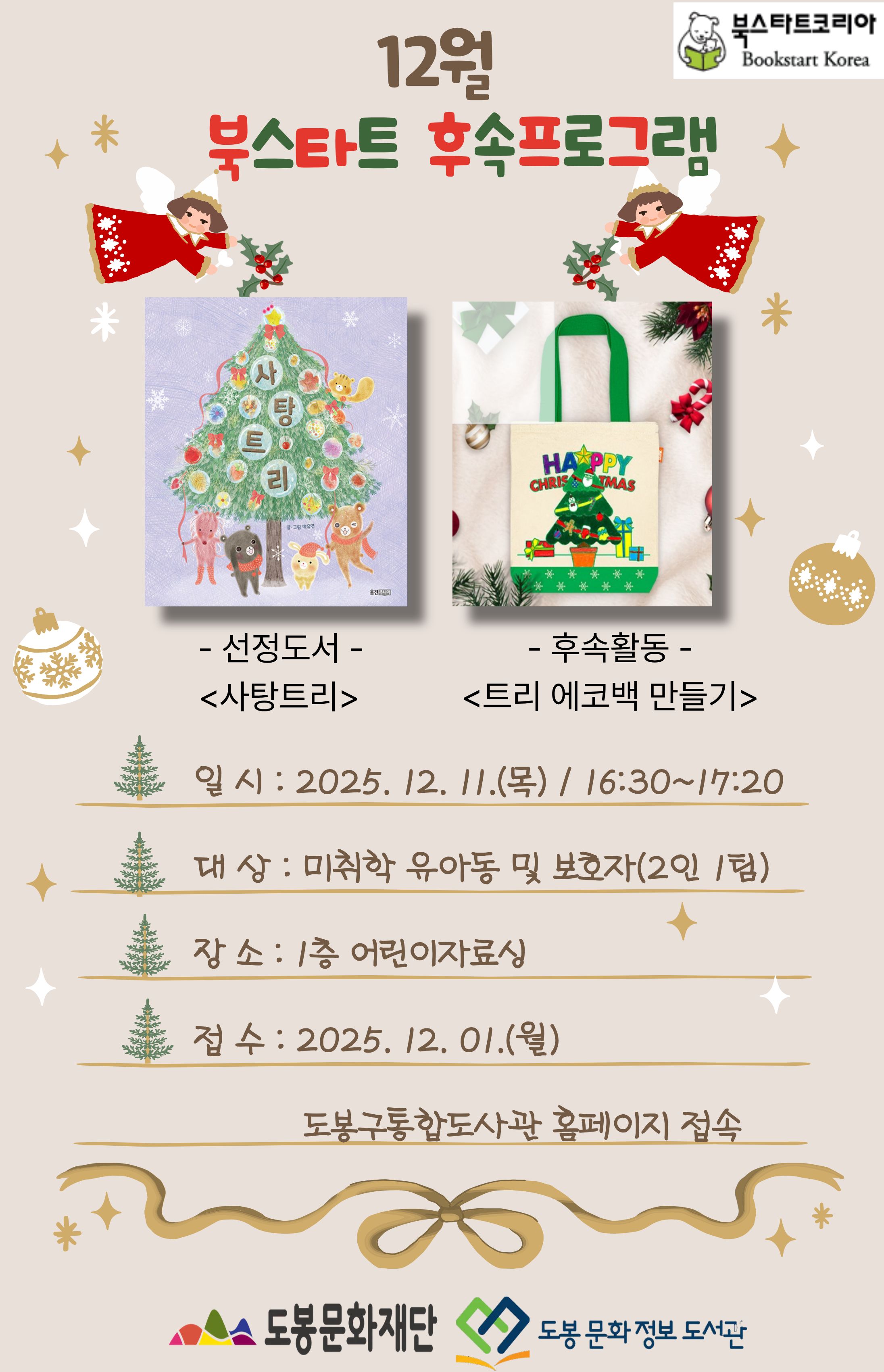 - 다음 2026년 1월 둘째주 북스타트 후속프로그램 접수는 12월 29일(월) 10시 입니다.