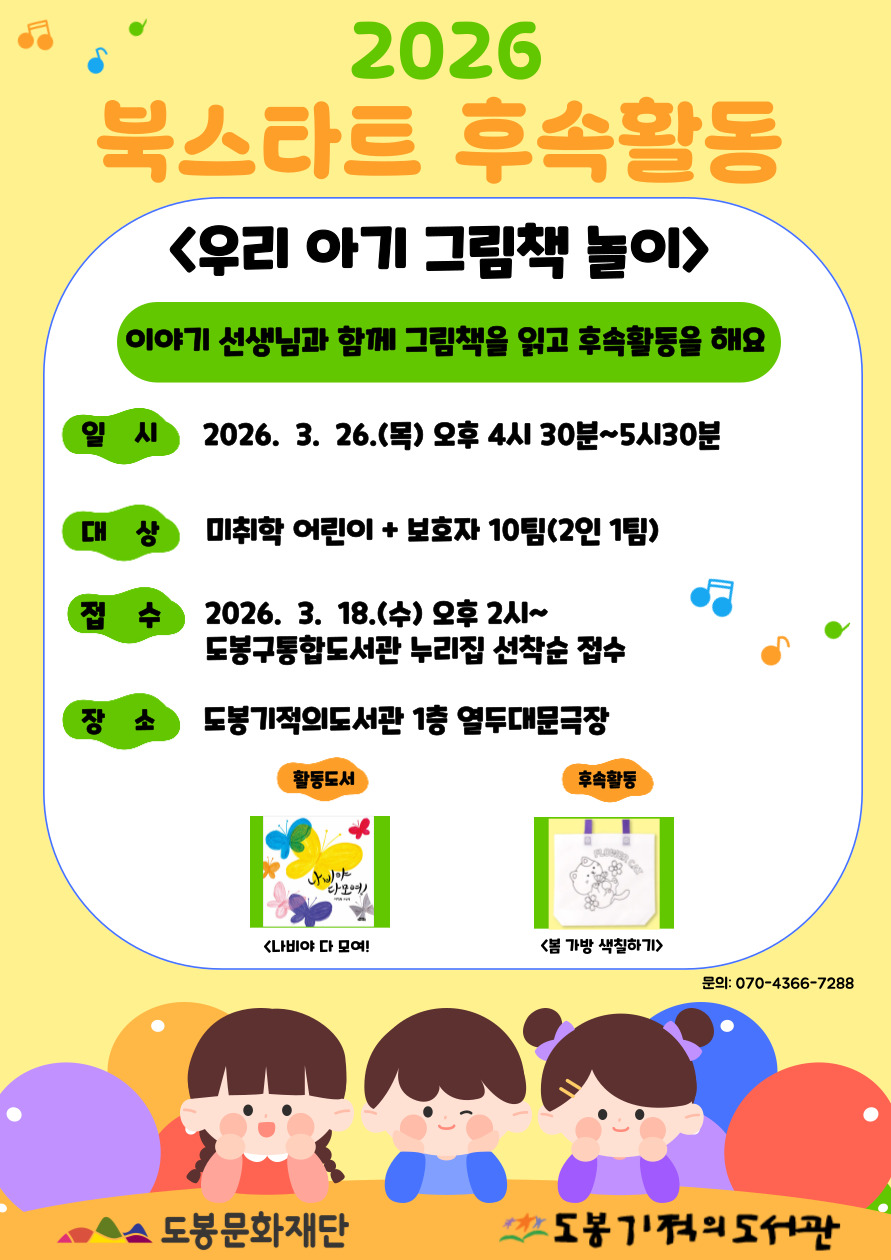 ● 접수: 2026. 3. 18. (수) 오후 2:00~ 도봉구통합도서관 누리집 선착순 접수