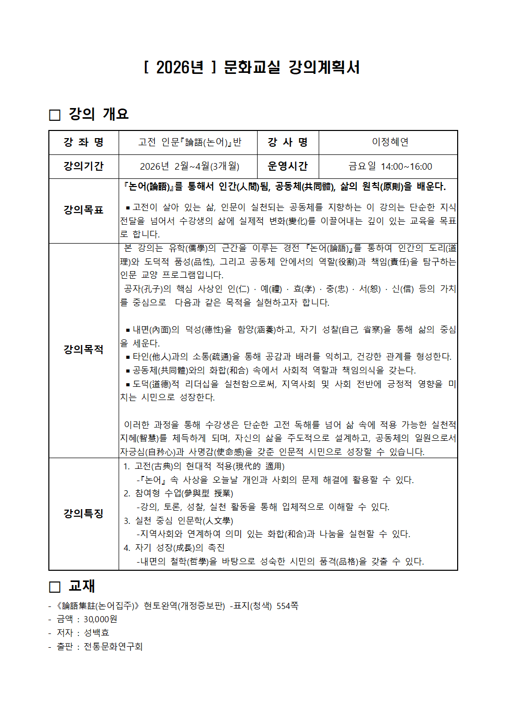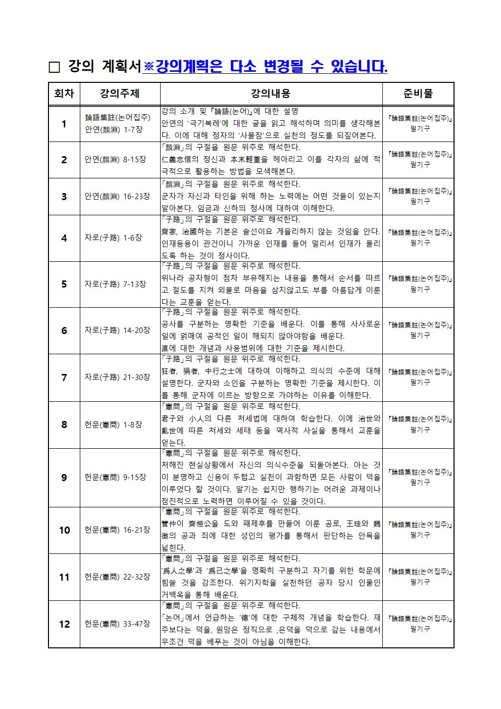 1. 월 4회 수업입니다. (회차가 줄어들 시 보충 강의 실시)
